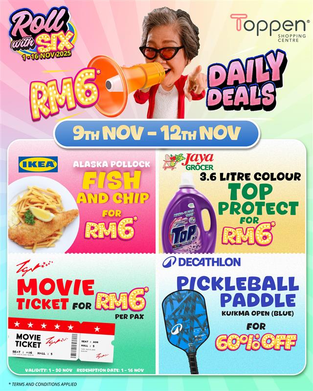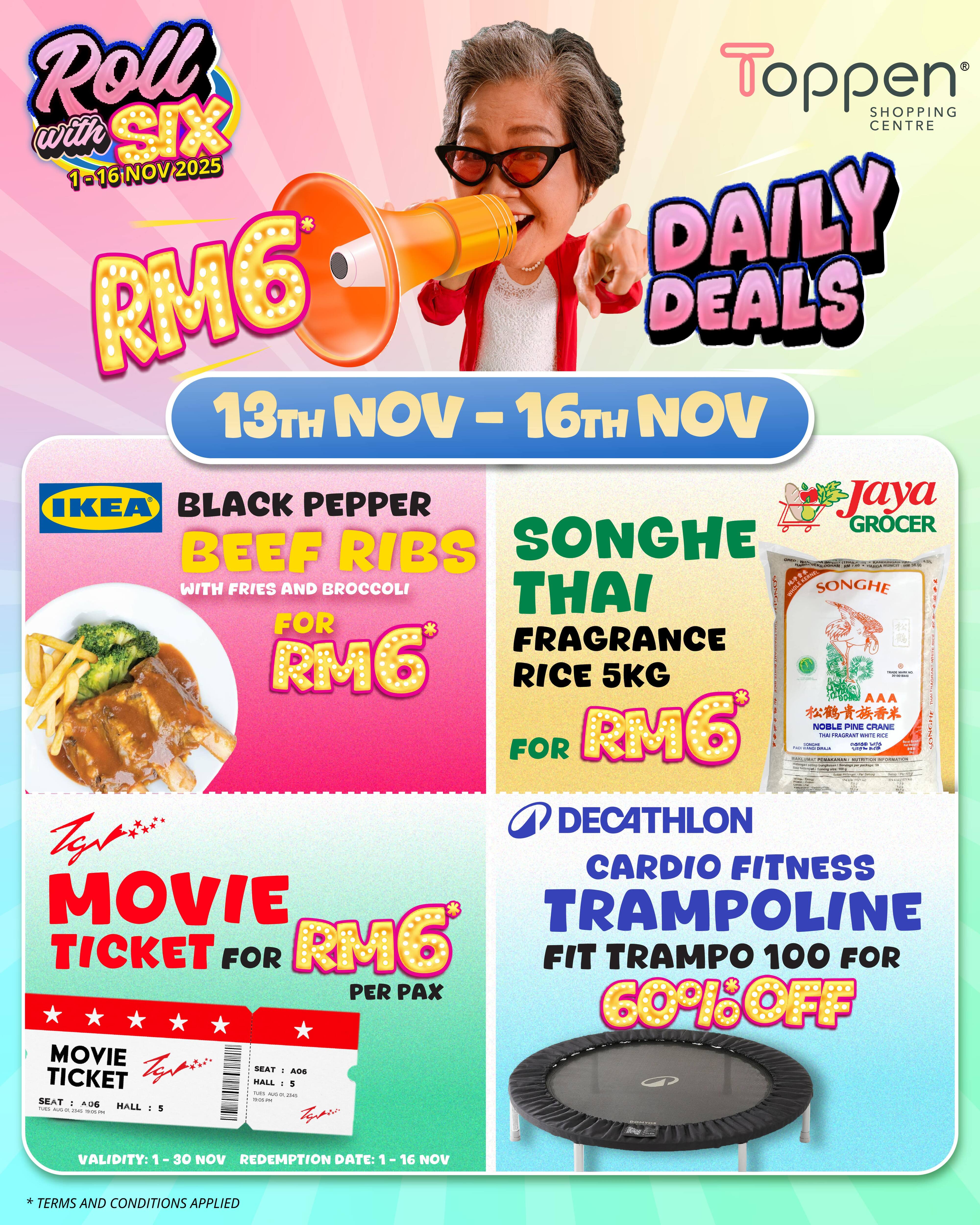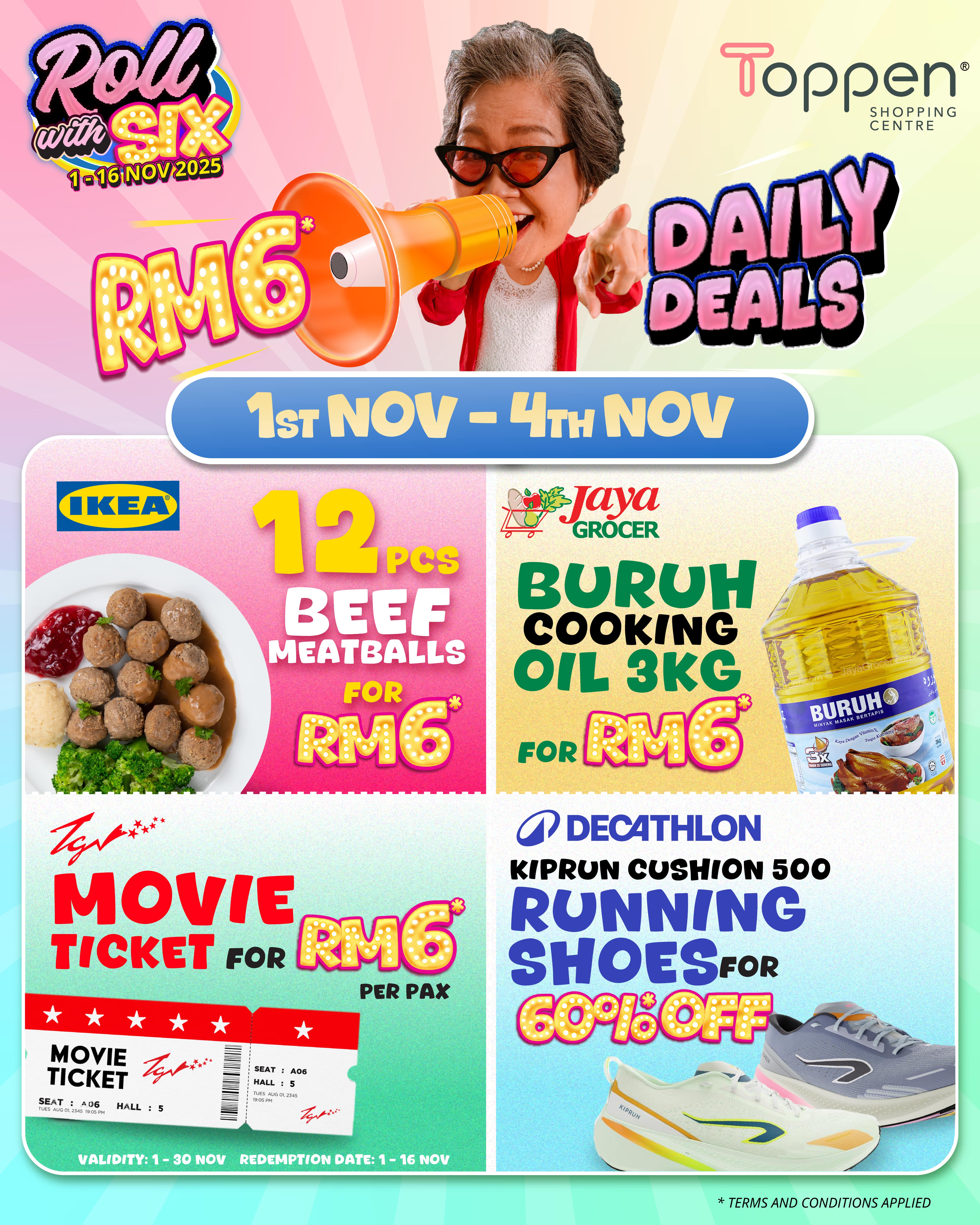 We’re rolling out RM6 Daily Deals from 1–16 Nov — featuring awesome offers from your favourite brands like IKEA, Jaya Grocer, TGV Cinemas, and Decathlon! 🤩