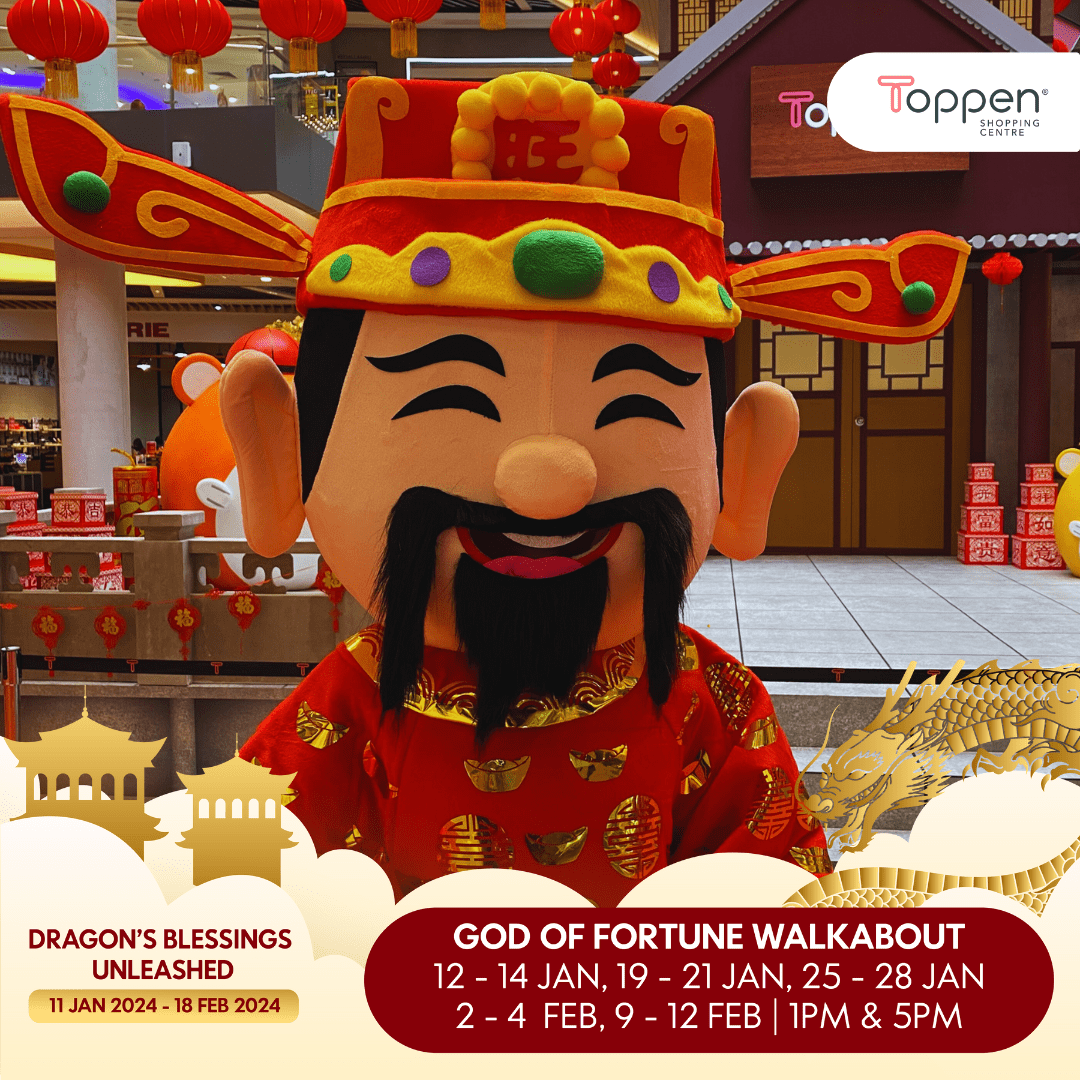 Get ready for luck to come your way! 🌟 Join the God of Fortune Walkabout at Toppen Shopping Centre as prosperity strolls through our celebration. Embrace the good vibes and festive cheer as we welcome the blessings of the season. Don’t miss this enchanting encounter! 🎊