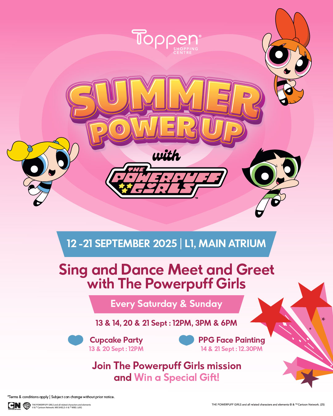 This school holiday, join us at Toppen Shopping Centre for exciting activities with Blossom, Bubbles, and Buttercup! From singing and dancing to creative play, it’s the perfect family outing you don’t want to miss.