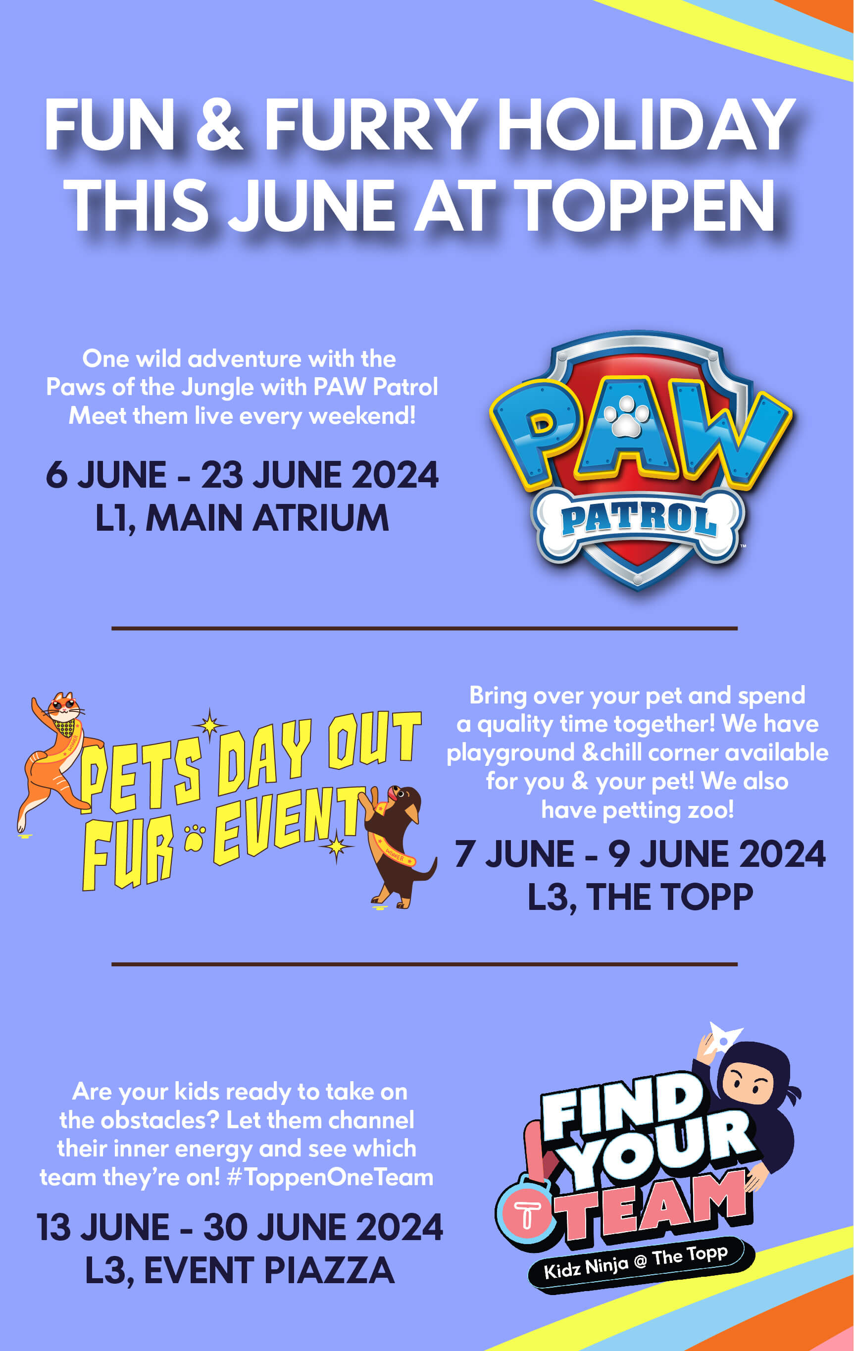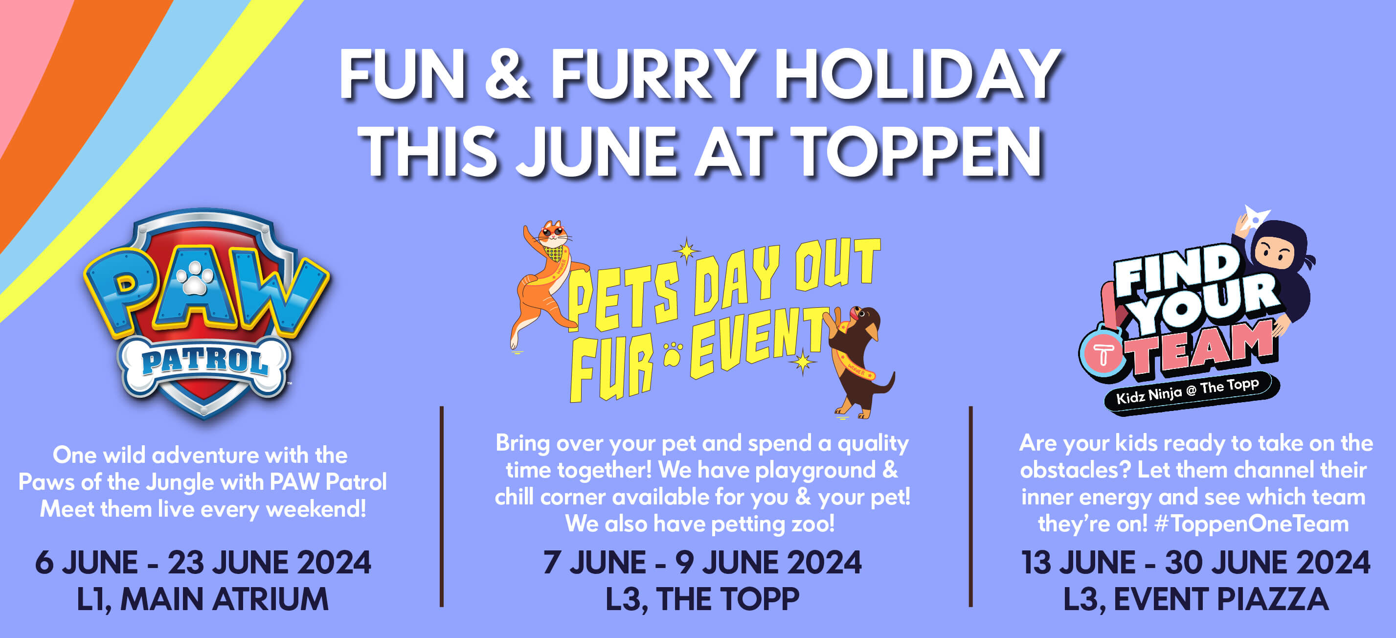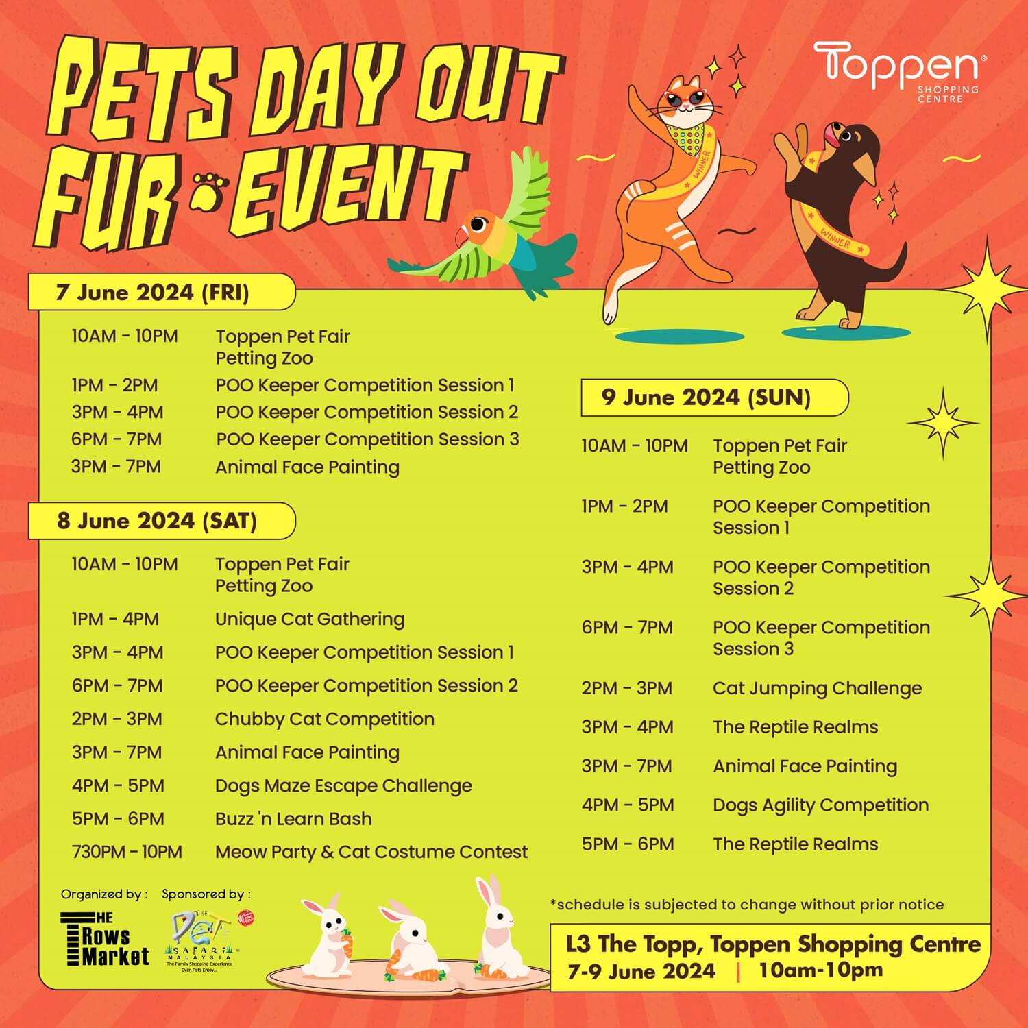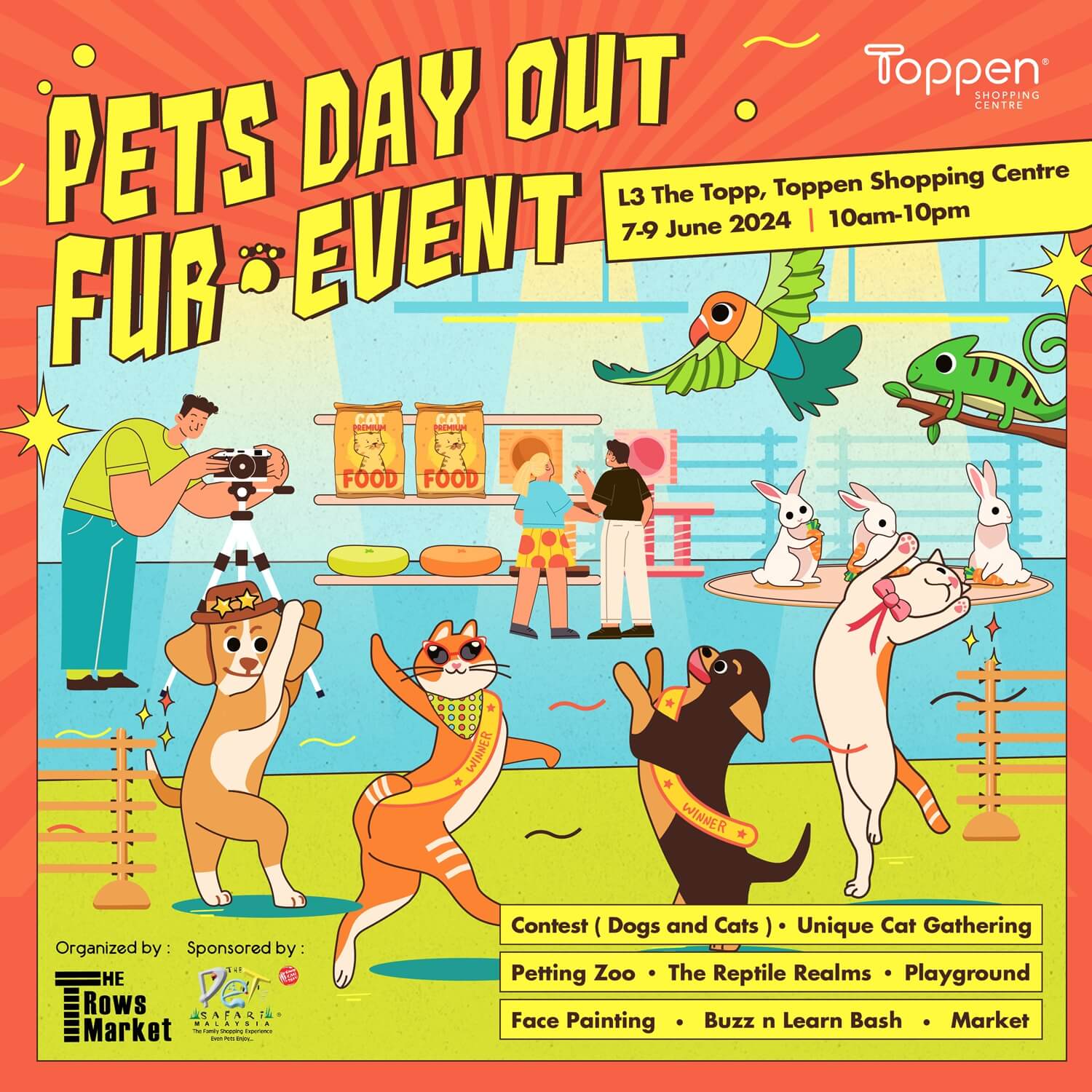 ๐พ Calling all pet owners! ๐พ Don’t miss out on the purr-fectly pawsome Pets Day Out Fur Event from 7 to 9 June 2024 at Toppen Shopping Centre. ๐ฑ It’s a 3-day celebration packed with fun and furry activities! ๐ถ Come bond with your pets and mingle with fellow pet lovers at this exciting event! ๐