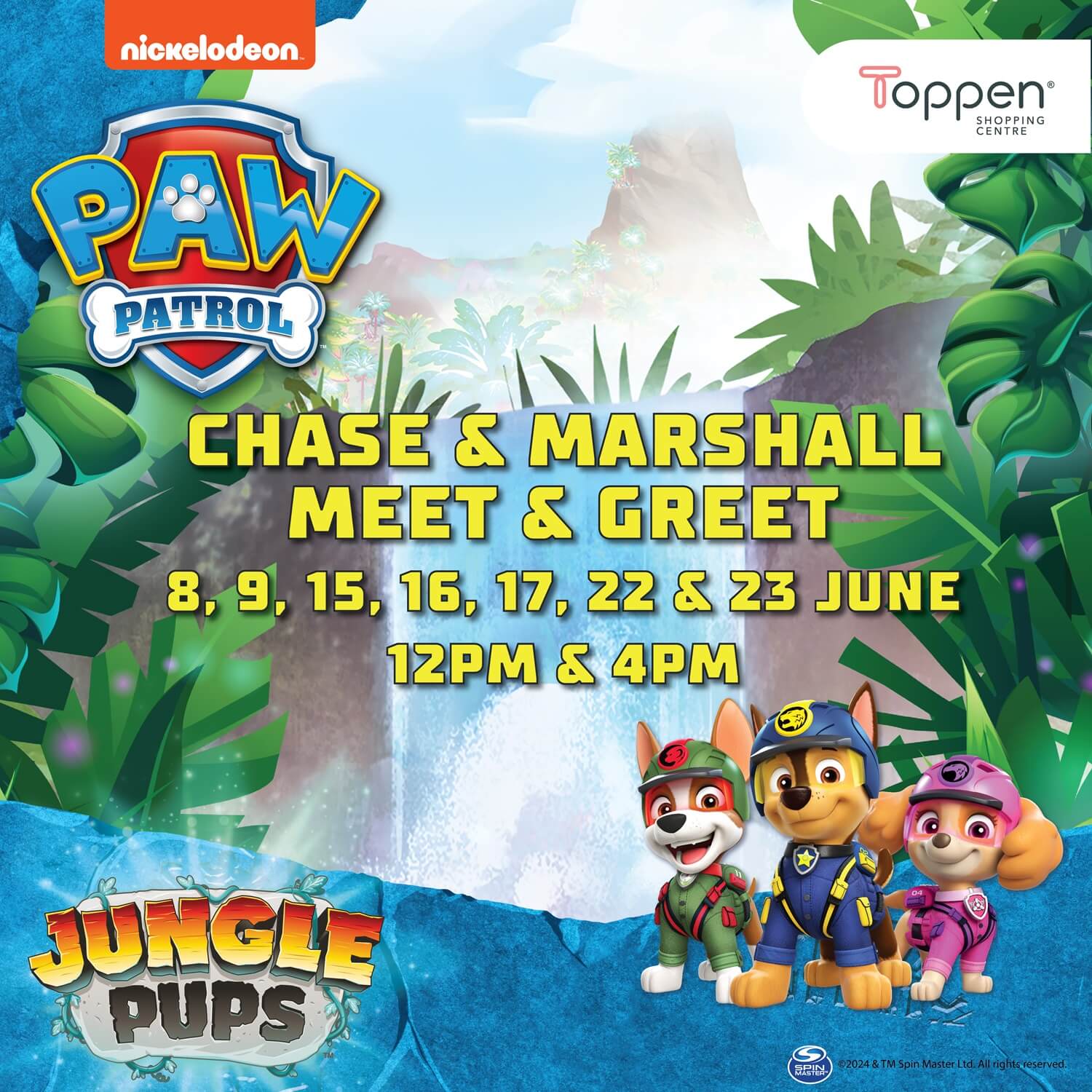 ๐ Calling all fans of Chase & Marshall! ๐ Are you ready for an unforgettable experience? Your dreams are about to come true! Join us for an exciting meet and greet session with your favorite heroic pups from Paw Patrol, Chase and Marshall! ๐พ Mark your calendars as Saturdays, Sundays, and Public Holidays will be filled with joy and excitement. Get ready to meet these beloved characters up close and personal. So, gather your friends, tell your baba and mama, and make sure to be there for this Furry Holiday at Toppen! ๐ถ Donโt miss out on the chance to make magical memories with Chase & Marshall! See you there! ๐