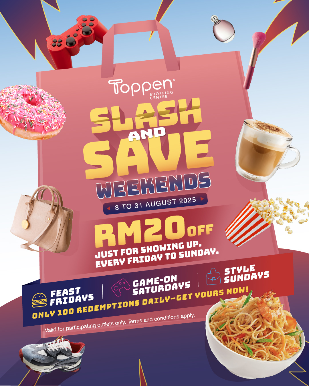 Weekend shopping? Finally… someone’s covering the cost. 🤭Guess who? It’s Toppen — and we’re giving you RM20 OFF every weekend! 💸🎉 Just spend RM40 and get RM20 off:
