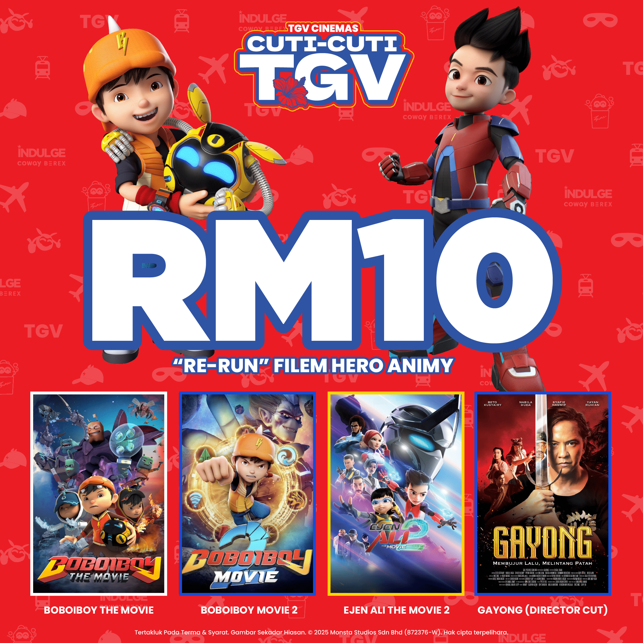 Celebrate Merdeka & Hari Malaysia with these movies! Catch #TGV special line-up of Must-Watch Movies featuring the latest blockbusters. What’s more? Watch rerun of BOBOIBOY, Ejen Ali & Gayong from just RM10. 🎬❤ Terms & Conditions