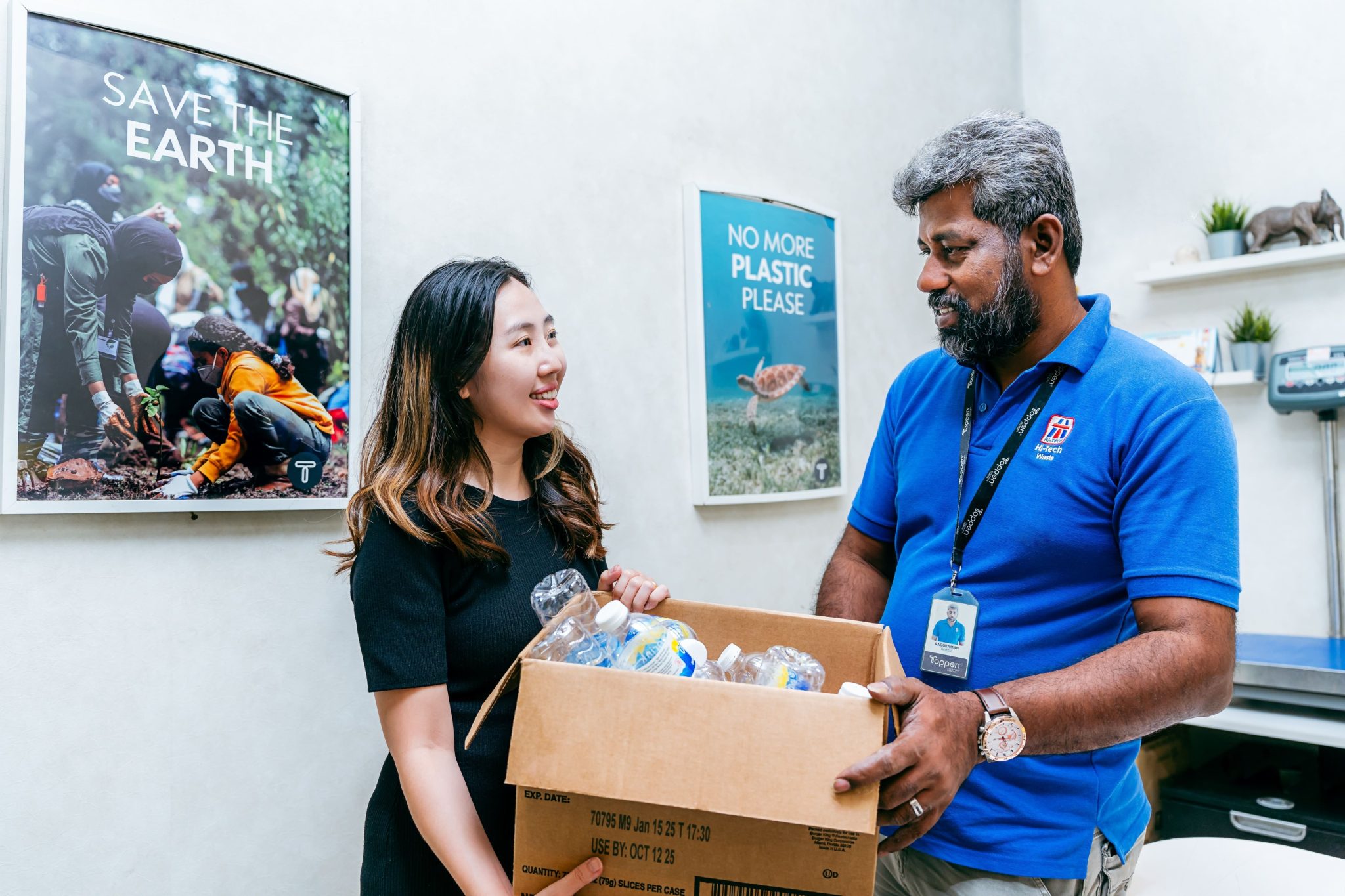 Bring the recyclable items to our Recycling and Buy-Back Centre (RBBC) at Level P2 (Green Zone).